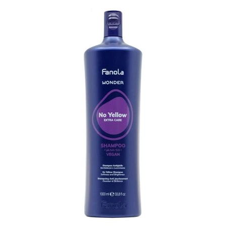 Fanola Wonder No Yellow to profesjonalny szampon z fioletowymi pigmentami, stworzony do pielęgnacji włosów blond, rozjaśnianych, siwych oraz z pasemkami. Skutecznie koryguje niepożądane, ciepłe odcienie i przywraca włosom chłodny, czysty kolor.